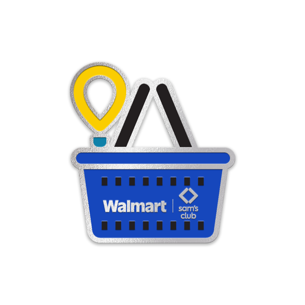 1.16"W x 1.25"H enamel Walmart lapel pin.
