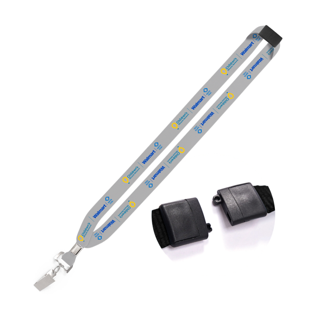 Full color .75" nylon lanyard with bulldog clip on D ring & convenience release.